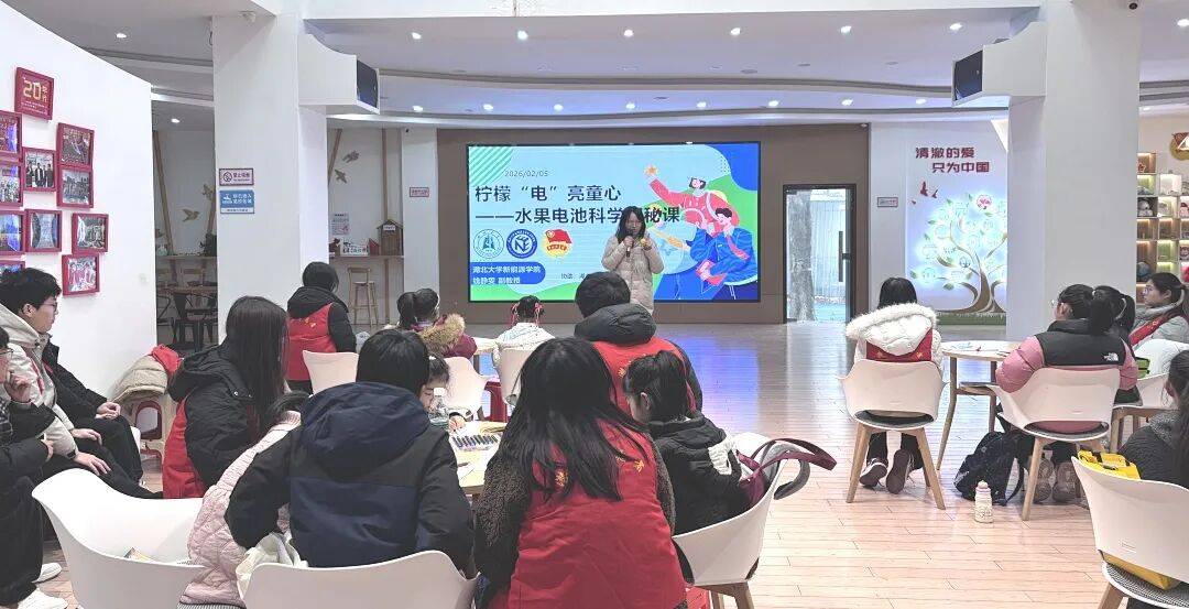 柠檬“电”亮童心科学课上,湖北大学新能源学院钱静雯副传授携意愿者团队,率领孩子们脱手探秘生果电池,正在趣味尝试中启迪科学思维,激发摸索热情。